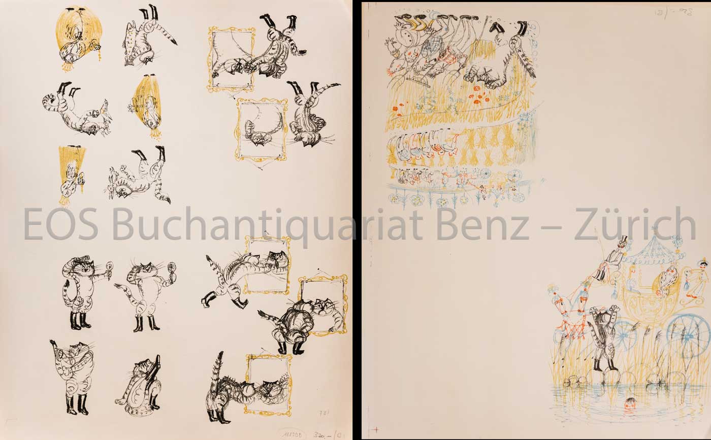 Fischer, Hans (1909–1958): Der gestiefelte Kater. Farb. Lithographie. 1957. Papiergrösse: 56,5 x 45,5 cm.