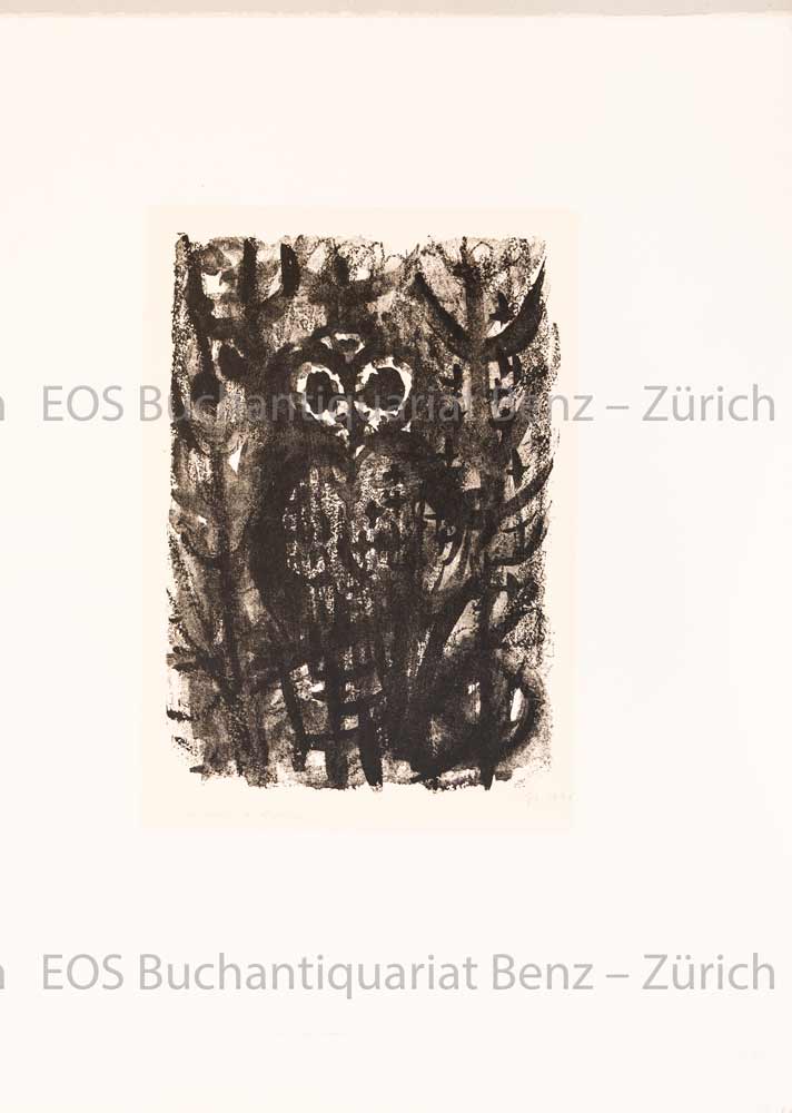Fischer, Hans (1909–1958): Le hibou. Lithographie. 1957. Bildausschnitt: 28,5 x 19,8 cm.