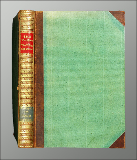 Flaischlen, Cäsar: Von Alltag und Sonne. Gedichte in Prosa. Berlin, Egon Fleischel, 1919. 125. Auflage. Gr.-8°. 8 Bl., 181 S., 2 Bl. Mit 1 Portrait und 23 Scherenschnitten von Erika Plehn. Halblederband der Zeit mit goldgeprägtem Rücken (leicht berieben und bestossen).