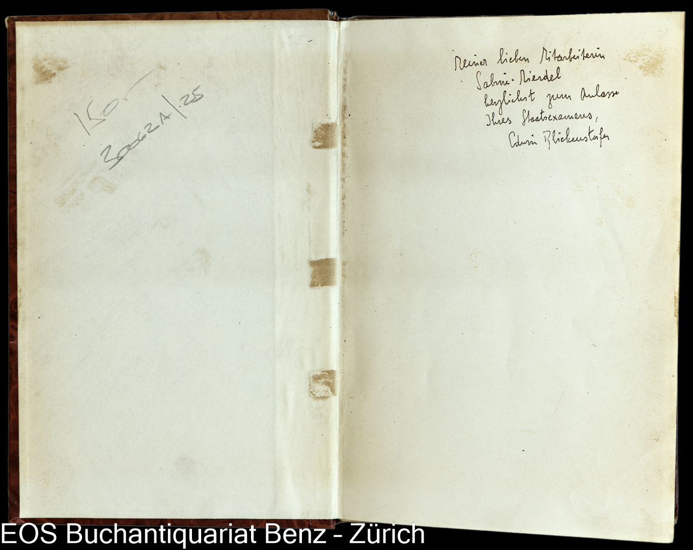 Norman F112. – Erschien erstmals 1923. – Den Teilnehmern am Deutschen Bibliophilentag Wien (Generalversammlung der Gesellschaft der Bibliophilen) 29. Sept. bis 2. Okt. 1928 gewidmet vom Internationalen Psychoanalytischen Verlag in Wien. – Ist nicht im Handel erschienen. Mit handschriftlicher Widmung von Edwin Blickenstorfer Dazu Sonderdruck aus der Psyche 15. Jahrgang, Heft 2 (1951) „Zur Psychopathologie und Therapie eines Falles von Geisterbesessenheit – nicht schizophrener Art“ von Edwin Blickenstorfer. – Einbandrücken mit Scotchkleber im Rücken fixiert.