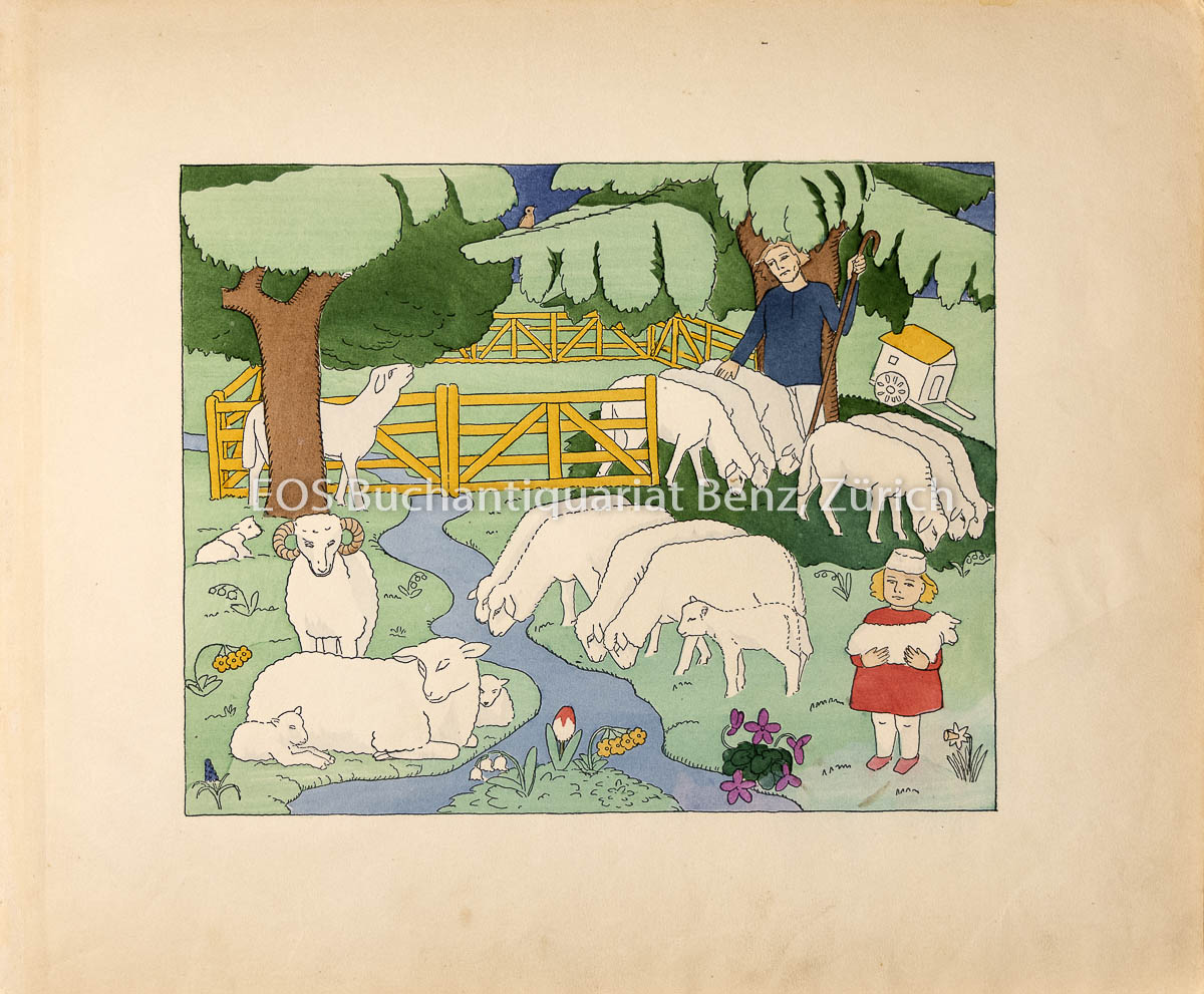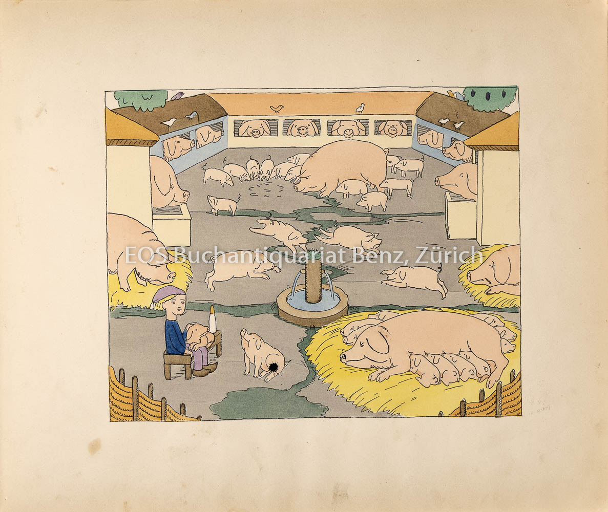 Doderer I, 413. – Doderer/Müller 457. – Bilderwelt 516 („Als erster Band der ‚Bilderbücher‘ war der Band ‚Tiere‘ 1905 erschienen“). – Stuck Villa II, 184. – Einband berieben, etwas fleckig und gebräunt, Fälze mit Japan verstärkt, ein Blattrand restauriert, Farbfleck in einem Rand, kleiner Tintenfleck auf einer Illustration. (Sprache: Deutsch / German)