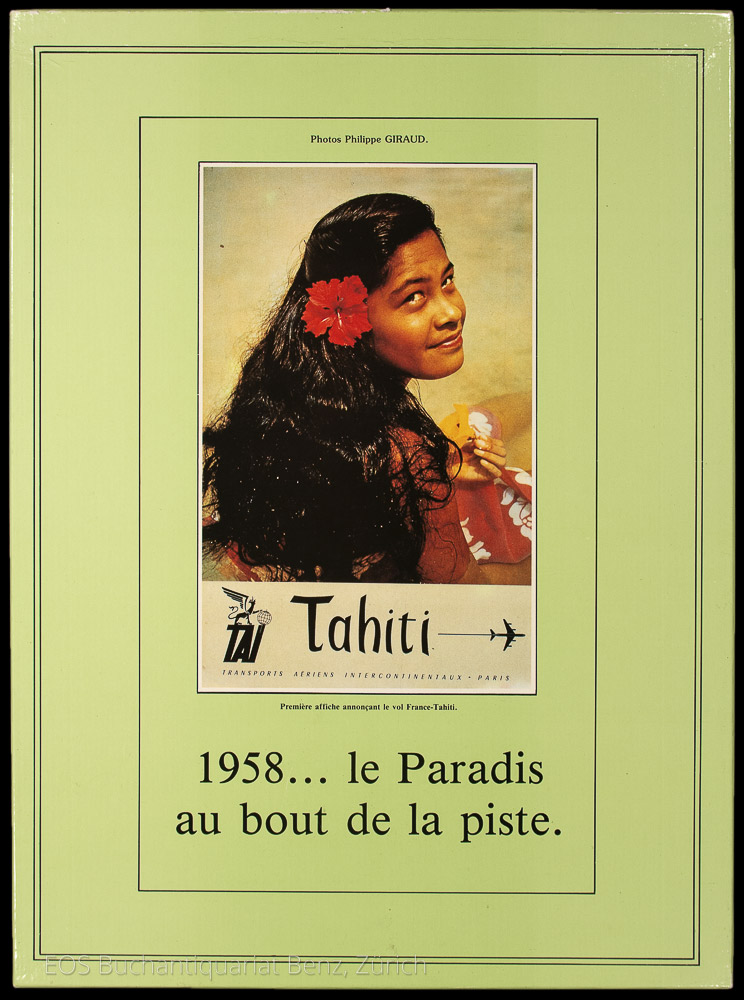 Giraud, Philippe: 1958… le Paradis au bout de la piste. Tahiti, Air Tahiti, um 1990. Folio. 16 S. Mit zahlr. Abb. und farbige Tafeln. Illustr. Orig.-Box.