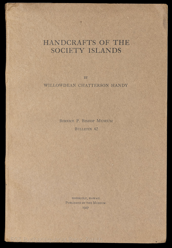 Handy, Willowdean Chatterson: Handcrafts of the Society Islands. Honolulu, Hawaii, 1927. 4°. 118 S. Mit 28 Abb. auf Tafeln und zahlr. Textillustrationen. Orig.-Broschur.