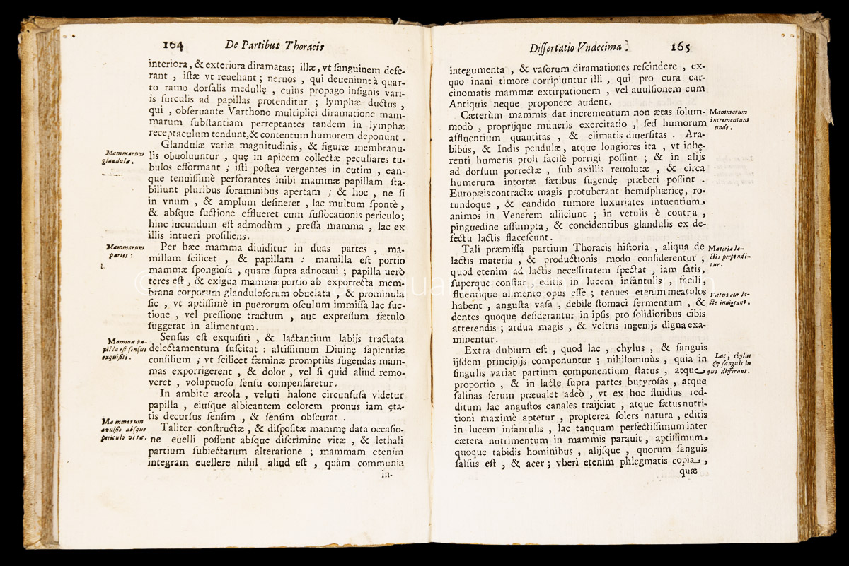 Hartmann, Johannes: Anthropologia physico-medico-anatomica… in qua totius humani corporis mechanica structura describitur, partiumque usus, atque operandi modus examinatur. Opus inutile, maxime medicinam exercentibus cum indice rerum, quae pertractantur. Venetia, Johann Baptist Tramontini, 1696. Kl.-4°. (14) 350, (2) S., (2) S. (Errata). Pergamentband der Zeit.