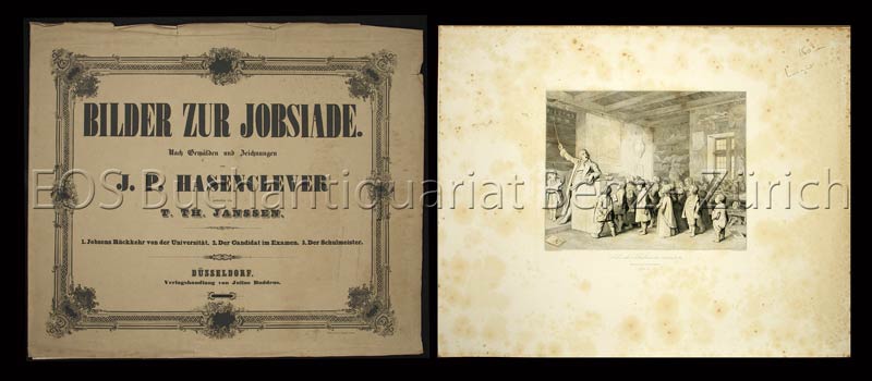 Hasenclever, Johann Peter: Bilder zur Jobsiade. Nach Gemälden und Zeichnungen von J.P. Hasenclever gestochen von T. Th(eodor) Janssen. Düsseldorf, Julius Buddeus, (um 1850). Quer-folio. Mit 3 Stahlstichtafeln. Lose in Orig.-Umschlag.