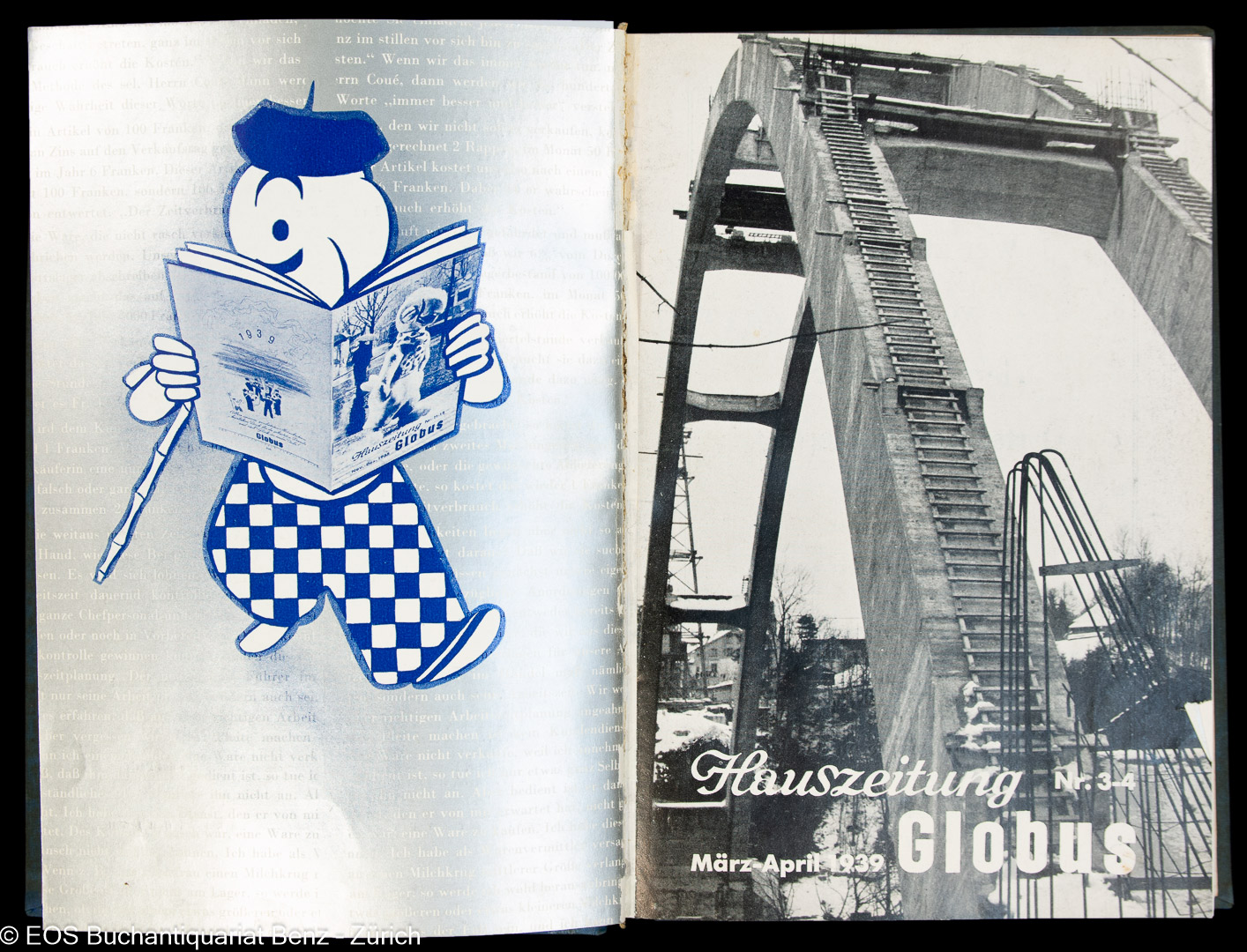 Haus-Zeitung der Magazine zum Globus. Zürich, Globus, 1939. Mit Textillustrationen. Orig.-Leinenband.