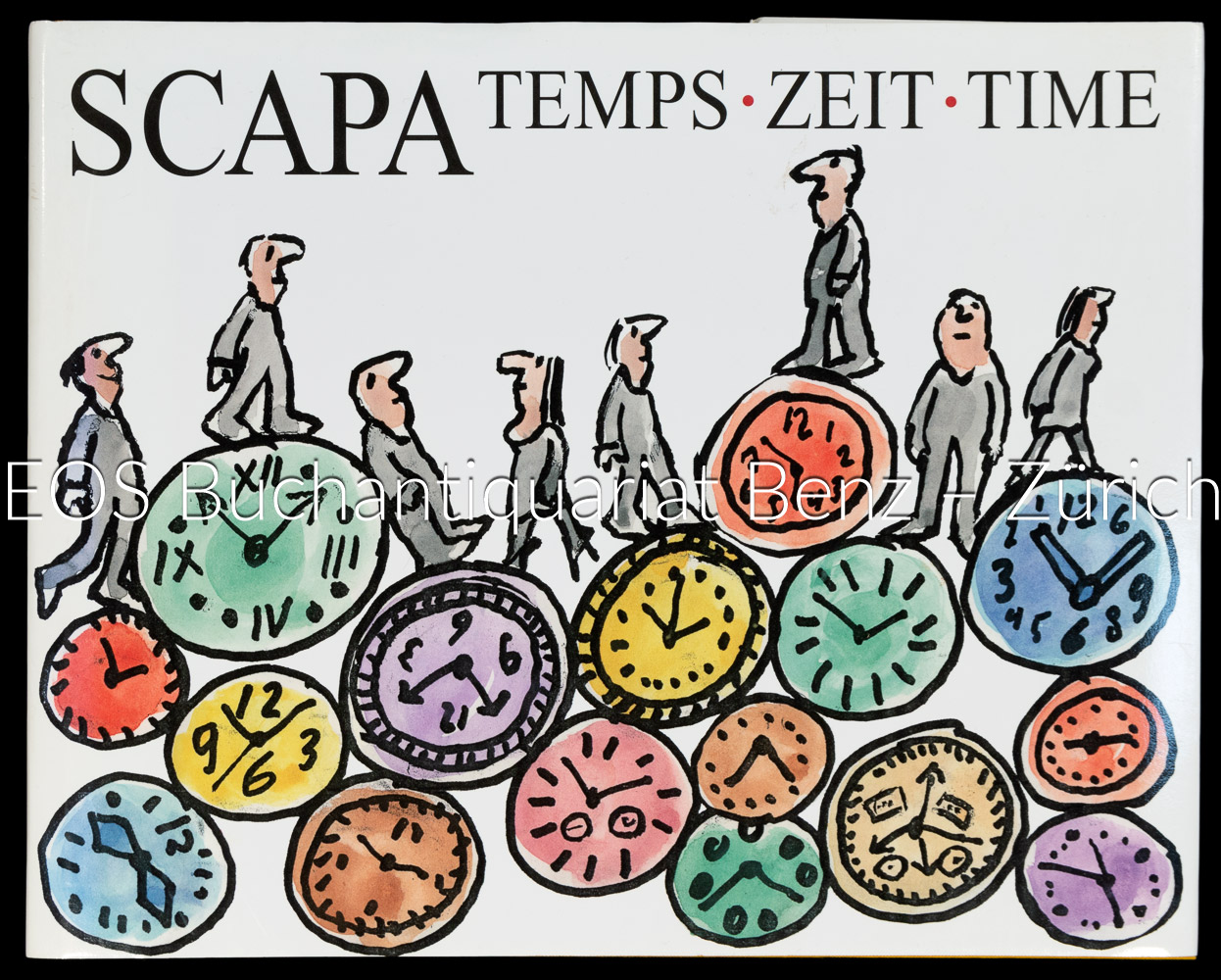 Widmungsexeplar.- Hayek, Marianne; Scapa – Temps – Zeit – Time. Bern, Edition Parlevent, 2009. Quer-4°. 126 S., mit zahlreichen Illustrationen von Scapa. Leinenband mit illustriertem Schutzumschlag.