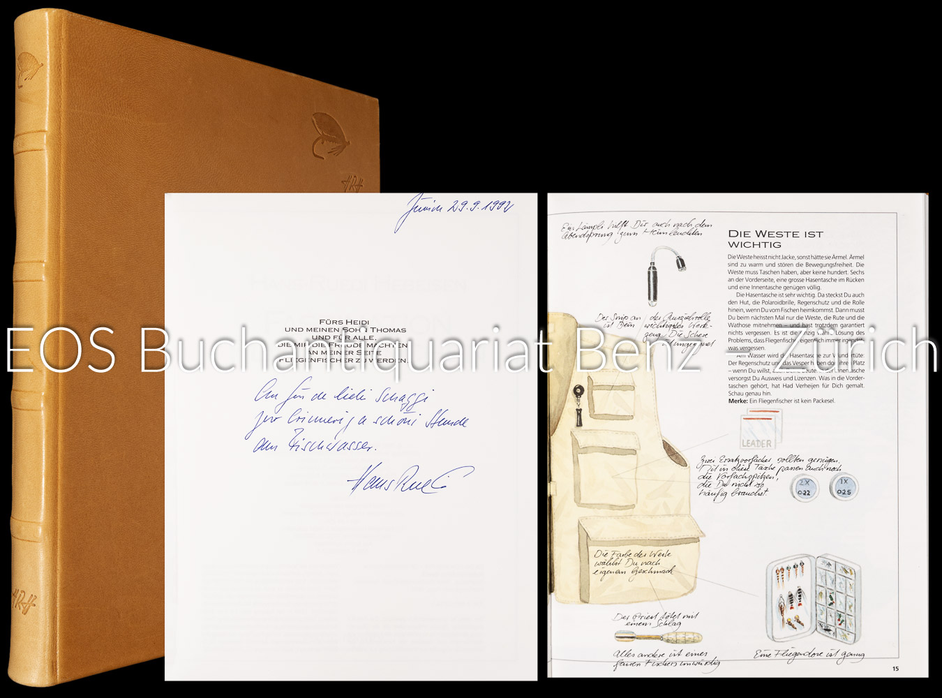 Hebeisen, Hans-Ruedi: Faszination Fliegenfischen. Hamburg, Parey, 1992. 215 Seiten. Mit vielen Illustrationen von Had Verheijen. Geprägter Volllederband.