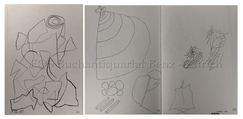 Herzog, Josef:  Schwarzweiss auf A4 – Zeichnungen 1965 bis 1998. Mit 36 Literaturzitaten aus Herzogs Bibliothek und der CD „farbklang“ von Roland Dahinden. Herausgegeben von Matthias Haldemann. Zug, Kunsthaus, 2001. 4°. Mit zahlr. Abb. von Josef Herzog. Orig.-Broschur.