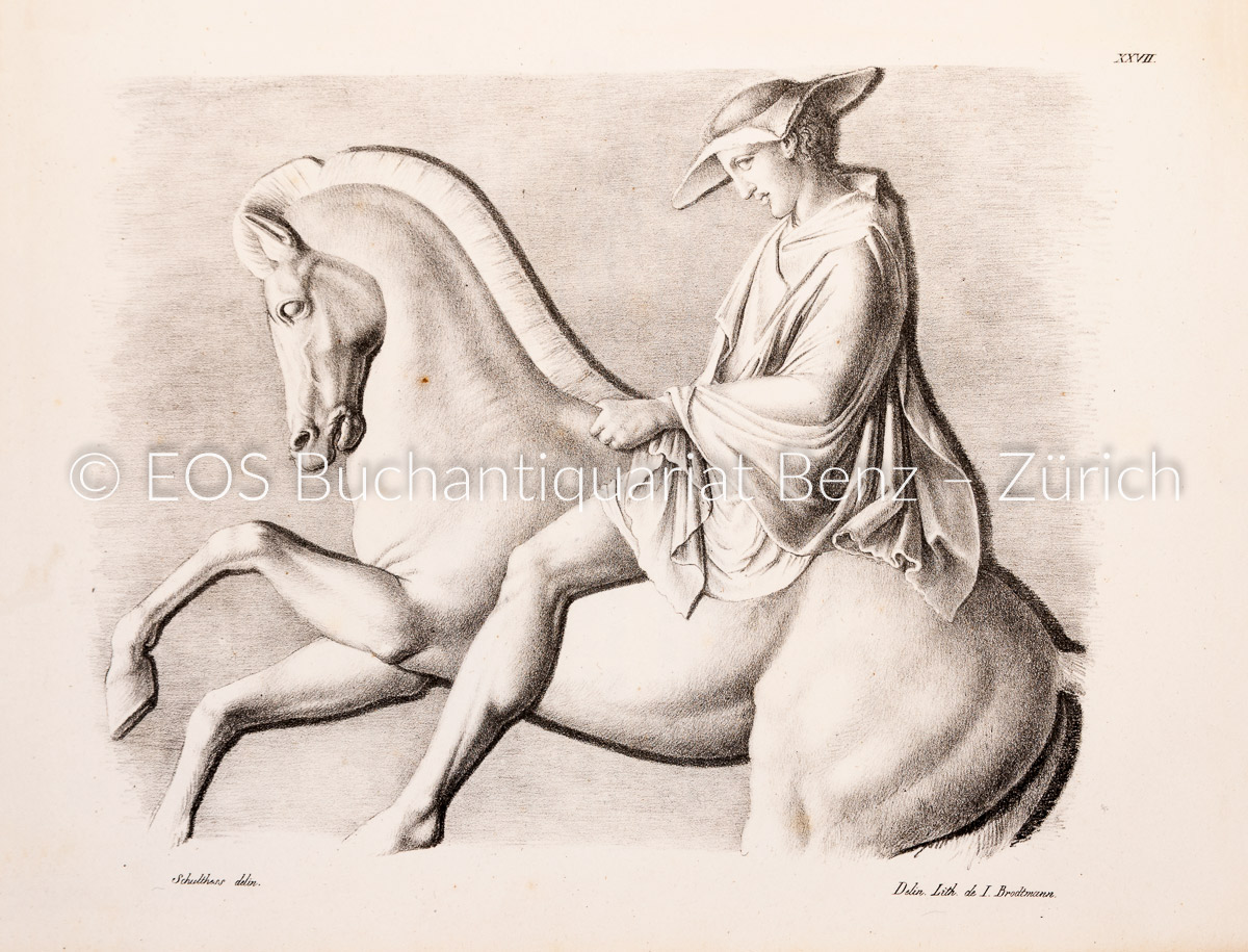 Ursprünglich als Lieferungswerk erschienen in 12 Heften (S. IV). Viele der lithographierten Tafeln stammen von Joseph Brodtmann (1787-1862). Der Herausgeber, Johann Jakob Horner, war Professor der Phiosophie und Ästhetik in Zürich, Vorsteher der Stadtbibliothek und aktiv in der Künstlergesellschaft. – Sehr schönes Exemplar. – Einbandkanten leicht berieben.
