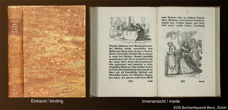 Hundhausen, Vincenz (Übersetzer): Mein Ausflug in die Politik. Seltsame Erlebnisse eines Sekretarius aus der Zeit Marco Polo’s. Zum ersten Male hrsg. von Vincenz Hundhausen. Peking, Pappelinsel-Werkstatt, 1938. 8°. (1) Bl., 294 (6) S. Mit zahlr. Textillustr. nach Holzschnitten und Kupferstichen. Orig.-Pappband mit goldgepr. Rückenschild (leicht berieben und bestossen).