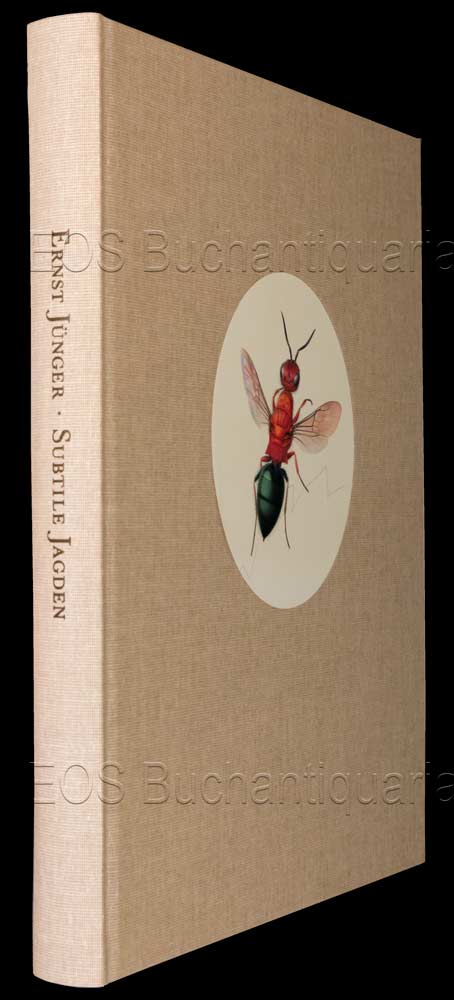 Linsenmaier. – Jünger, Ernst: Subtile Jagden. Stuttgart, Klett-Cotta, 1995. 4°. 228 (4) S. Mit 10 farb. Tafeln nach Farbstiftzeichnungen von Walter Linsenmaier. Farb. illustr. Leinenband mit illustr. Vorsätzen.