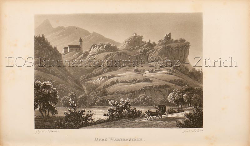 Das Frontispiz u. die Tafeln zeigen das Bad Pfäfers mit seiner Umgebung, die Burg Wartenstein, Stift Pfäfers u. einer Ansicht der Badeanstalt in Pfäfers.