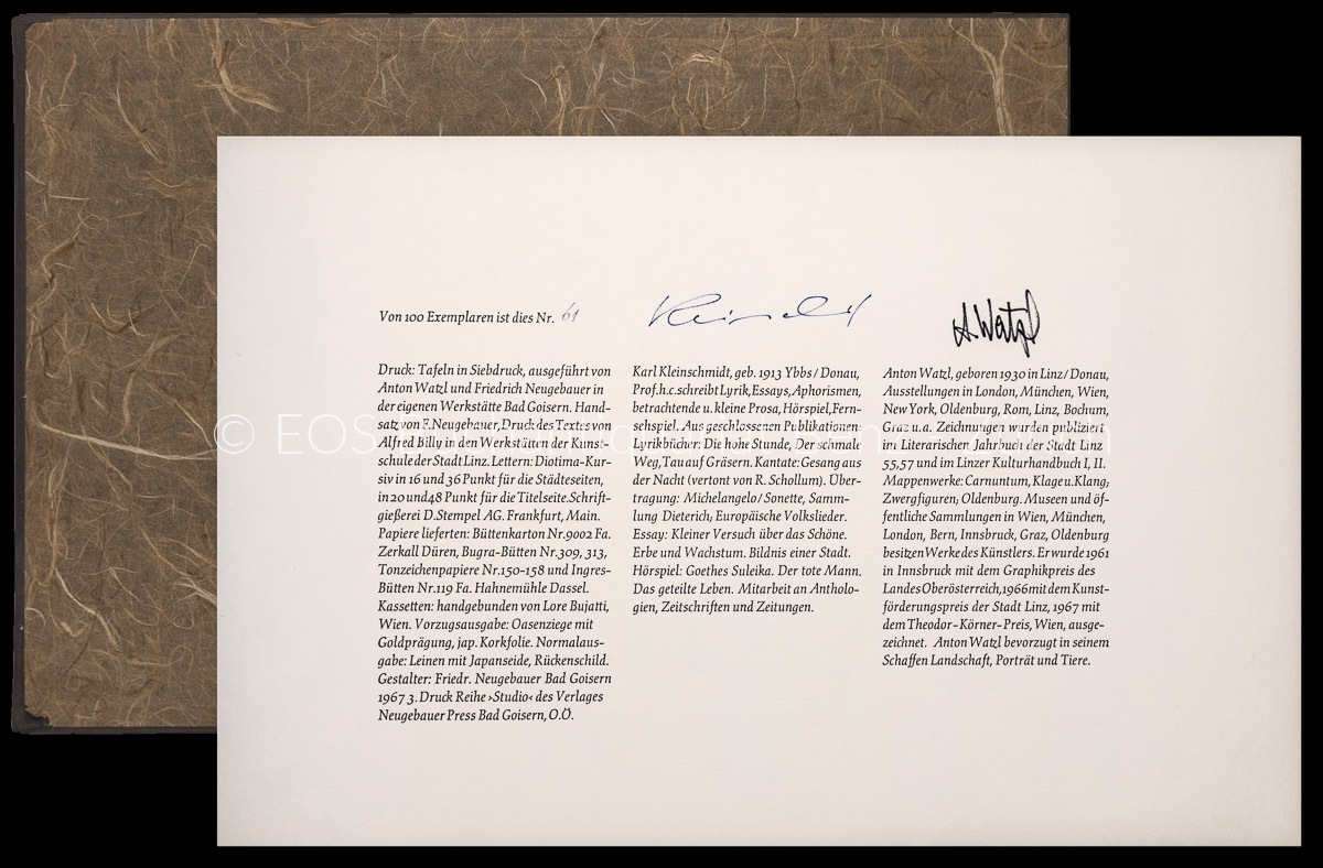 3. Druck Reihe «Studio» des Verlages Neugebauer Press Bad Goisern. N° 61 der limitierten Auflage von 100 Exemplaren. Vom Künstler singiert. (Sprache: Deutsch / German)