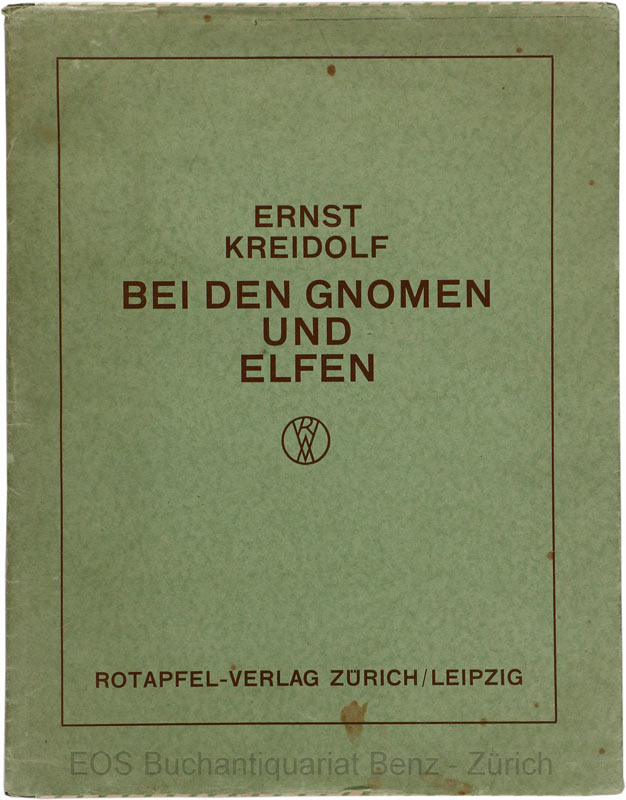 Kreidolf, Ernst: Bei den Gnomen und Elfen. Zürich und Leipzig, Rotapfel-Verlag, 1929. 4°. (26) S. Mit farb., ganzs. Illustr. von E. Kreidolf. Illustr. Orig.-Halbleinenband mit Schutzumschlag.