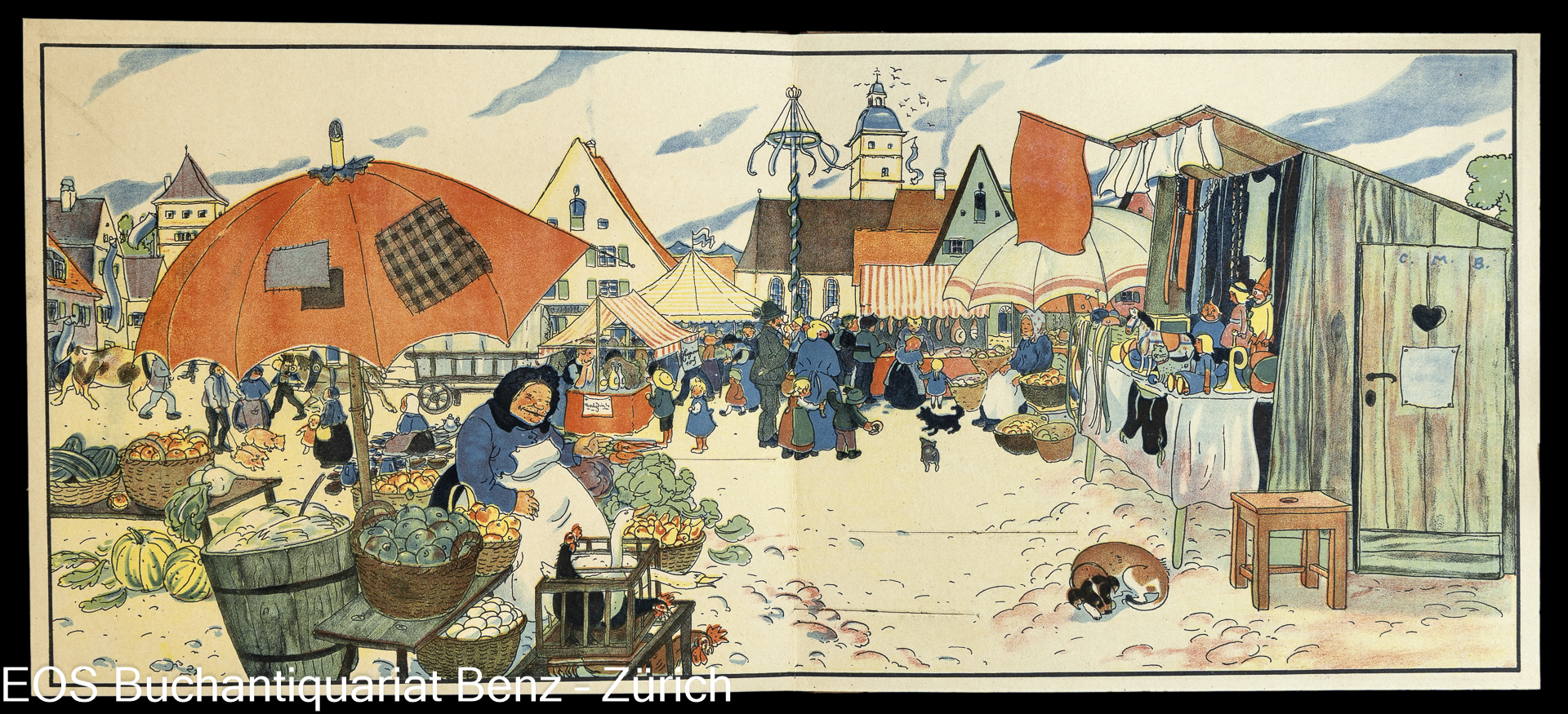 La citta dei bambini. Nürnberg, Gerhard Stalling. ca. 1925 Quer-4°. (14) S. mit farbigen Illustrationen von Else Wenz-Viëtor.. Farb. illustr. Orig.-HLn.