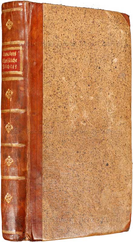 Lavater, Johann Kaspar: Der Christliche Dichter. Ein Wochenblatt von Johann Caspar Lavater. Angefangen im May 1782. (Motto:) Welcher weiss, Gutes zu thun, und thut es nicht, dem ist es Sünde. Zürich, bey David Bürgkli, (1782-83). 8°. 442 S. Halbldr. d. Zt. mit rotem Rückenschild und Rückenvergoldung.