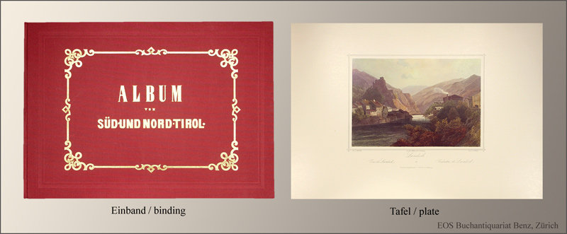 Würthle.- Lentner, J., Ludwig Strub u. Georg Mayr: Malerische Ansichten von Süd u. Nord Tirol. Nach der Natur gezeichnet von F. Würthle, in Stahl gestochen von denselben u. Andern. Innsbruck, Karl Tausch, (1982). Quer-4°. (1) Bl., (2), (80), (2) S. Mit 40 farb. Tafeln nach kol. Kupferstichen von Friedrich Würthle Goldgepr. Orig.-Leinenbd. in Orig.-Leinenschuber (Schuber berieben).