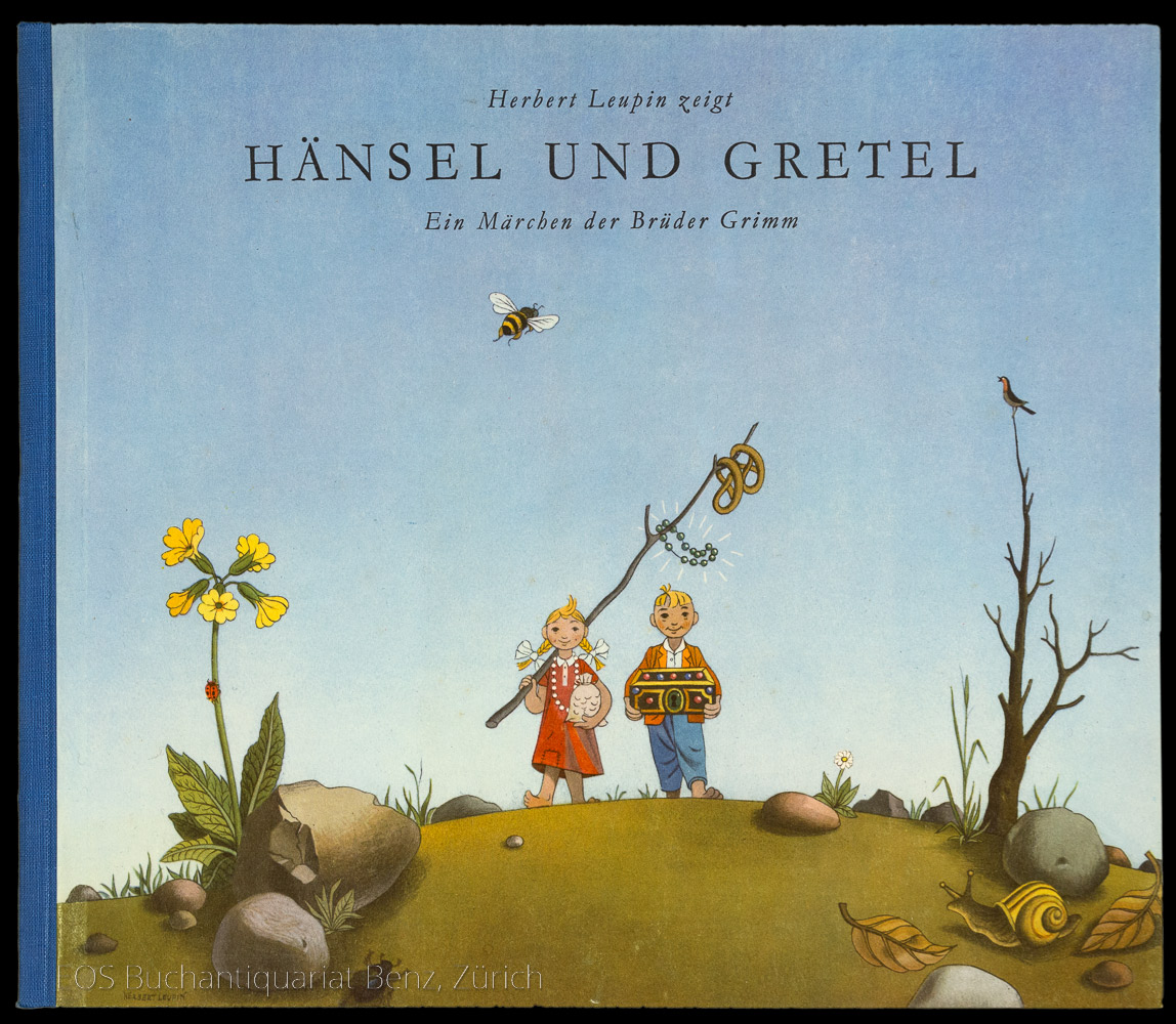 Märchen.- Leupin, Herbert (Gebr. Grimm):  Hänsel und Gretel. Zürich, Globi-Verlag, 1944. 1.-25. Tsd. Qu.-8°. (8) Bl. Mit farb. Illustr. von Herbert Leupin. Orig.-Halbleinenband.