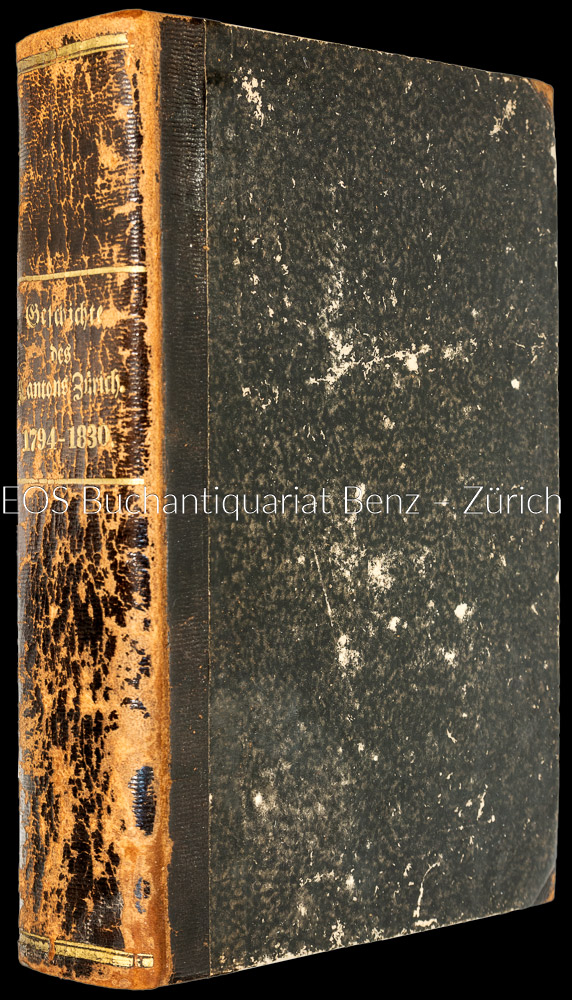 Barth 7952 (zu Leuthy) cf. Feller/Bonjour S. 668–9. – Ausführliche Kantonsgeschichte von Johann Jacob Leuthy (1788–1855). Die Portraits zeigen Zürcher Persönlichkeiten. – Das Papier durchgehend stockfleckig. Der Einband berieben und bestossen.