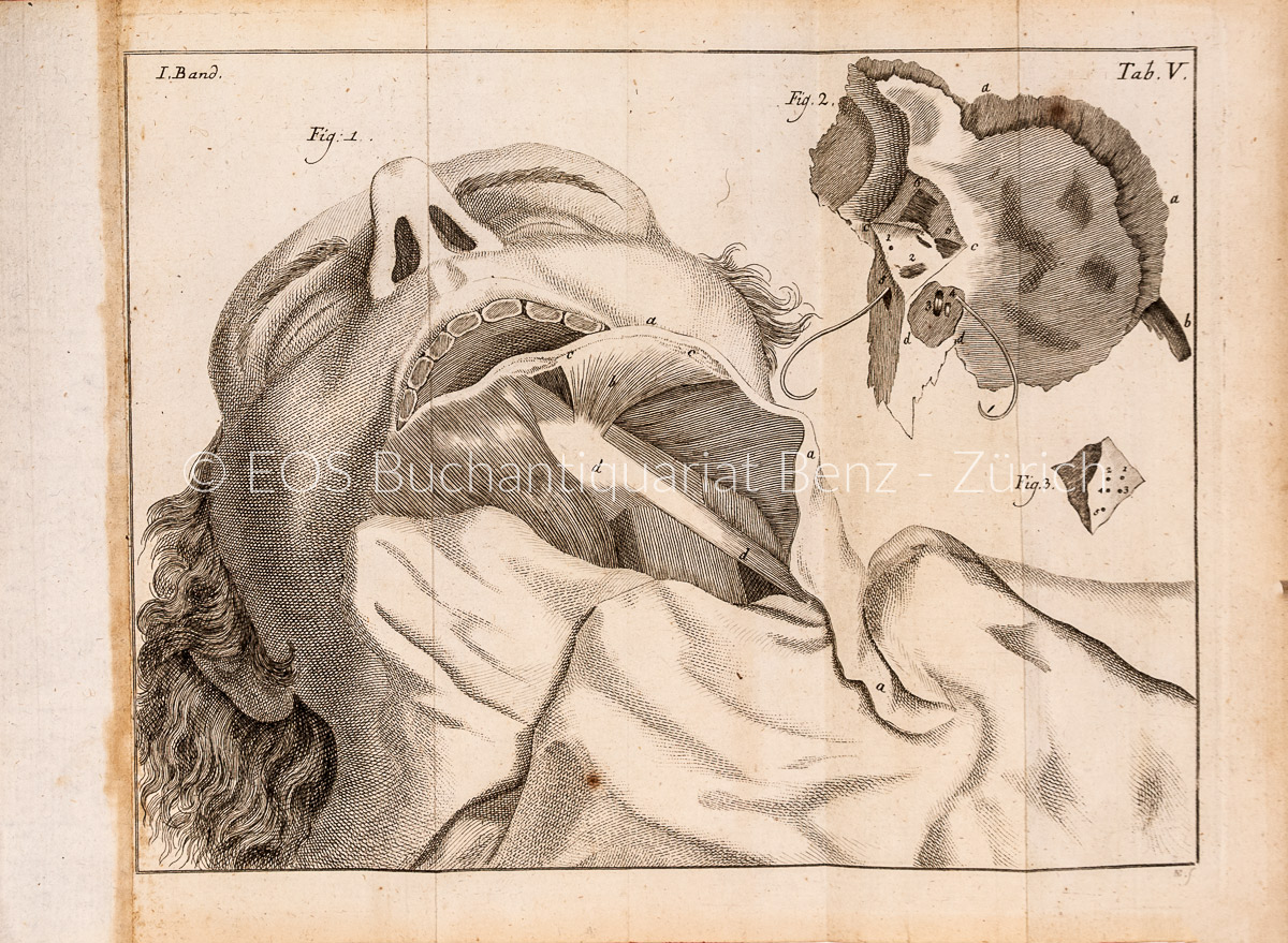 Blake 271. – Hirsch-H. III, 784. – HOH 865 (für die Originalausgabe). – «Das erste gute anatomische Buch nach Winslow» (Hirsch-H.). Einzige deutsche Übersetzung der «Historia anatomica-medica» von 1767, auf Grund der posthum 1776/77 erschienenen Ausgabe von Antoine Portal. Die meisten seiner medizinischen Beobachtungen erfolgten auf Grund von über 3500 Autopsien. – «Lieutaud rectified many anatomical errors» (Garrison & Morton). – Stellenweise leicht gebräunt. Titel stockfleckig. Einbandrücken am oberen Kapital angerissen und mit kleiner Fehlstelle. – Selten. (Sprache: Deutsch / German)