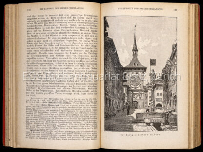 Loetscher, Hans:  Die Kurorte und Heilquellen der Schweiz. Reisehandbuch für Kurgäste und Somerfrischler sowie Ratgeber für Aerzte. Zürich, Th. Schröter, 1896. 12. Auflage. 8°. LX, 450, (5) S., (9) S. (Anzeigen). Mit über 200 Ansichten, Panoramen und Karten. Goldgeprägert Orig.-Leinenband.