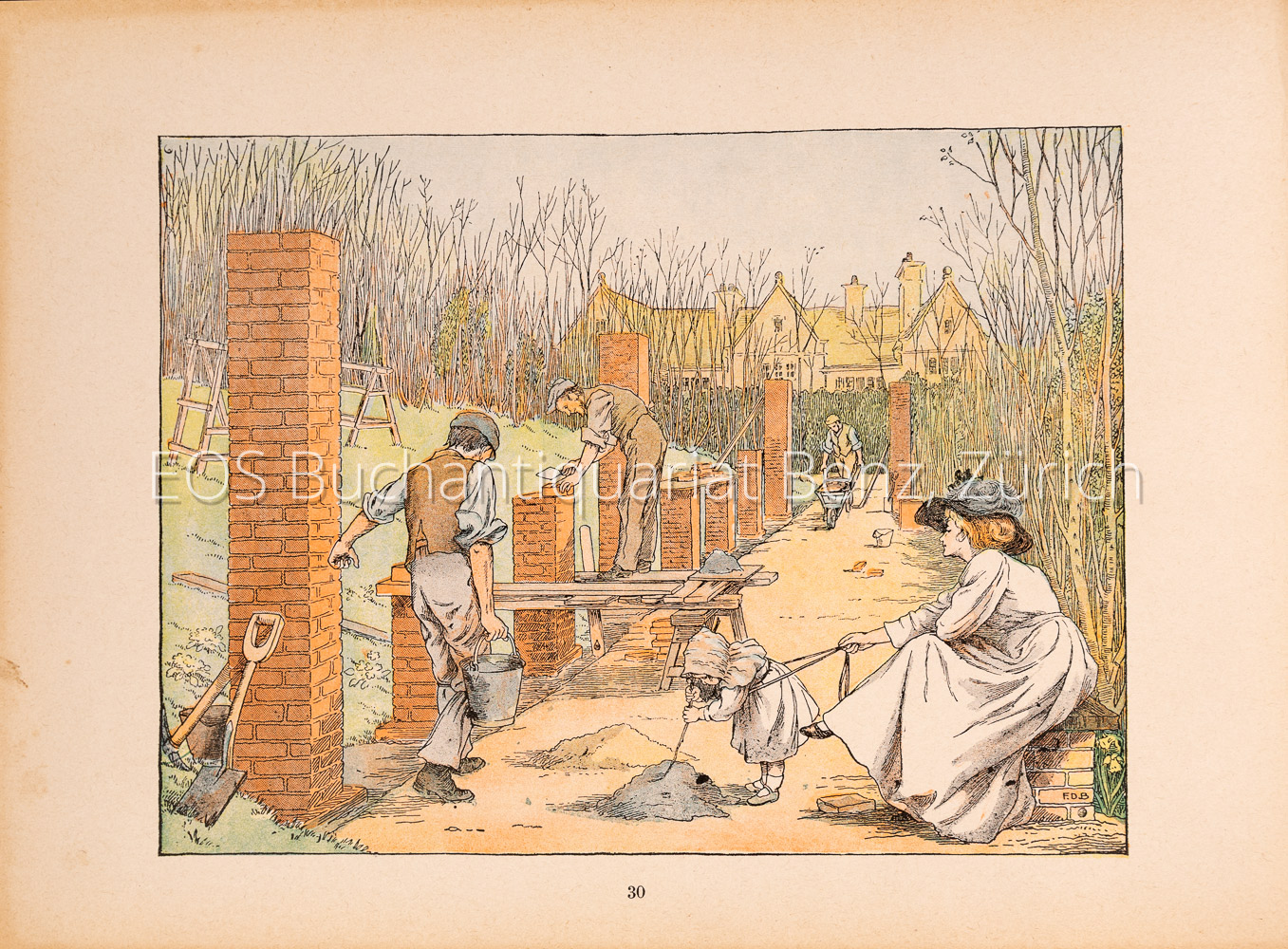 Lucas, Edward Verrall: Four and Twenty Toilers. London, Edwin Dalton, (1900). Quer-4°. 103 S. Mit farb. Illustrationen von F.D. Bedford. Farb. illustr. Orig.-Halbleinenband.