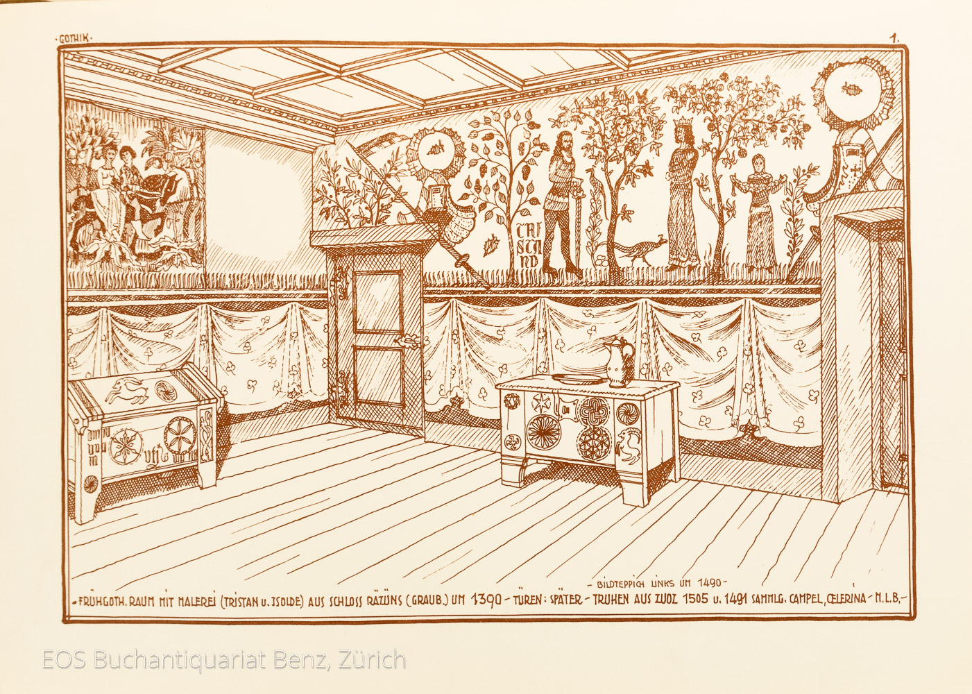 Lutz, Max: 160 alte Schweizer Bürger- und Bauernstuben. Bern, M. Lutz, 1946. Quer-4°. 8 S. Mit 212 Tafeln mit Illustrationen von Bürgerstuben. Halbleinenmappe mit losen Blättern.