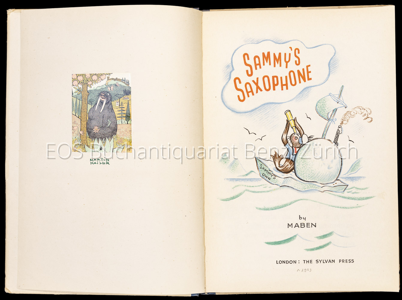 Maben: Sammy’s Saxophone. London, The Sylvan Press, (1943). 8°. (16) Bl. Mit 16 ganzs. farb. Illustrationen. Farb. illustr. Orig.-Halbleinenband.