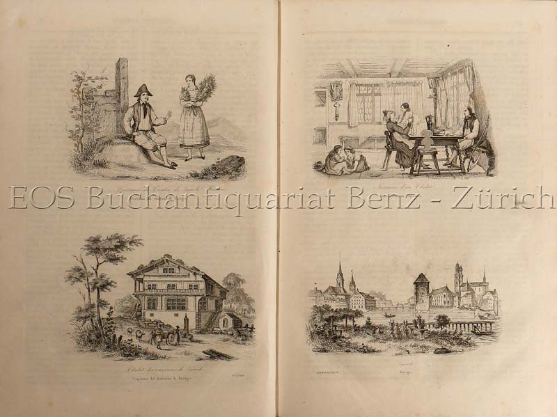 Wäber 68. – Vgl. Barth 17352, für die franz. Ausgabe von 1835. – Ausführliche Beschreibung diverser Orte der Schweiz und des nahen Auslandes. Die Abbildungen zeigen Städte, Gebäude, Monumente und Kostüme. – Das Papier vereinzelt stockfleckig. Der Einband berieben und bestossen. (Sprache: Deutsch / German)