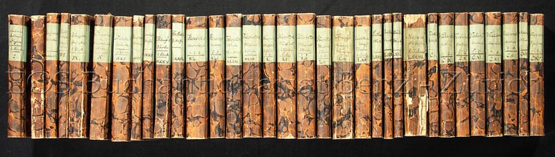 Vorhanden sind die Bände 1, 4, 5, 6, 9, 10, 21, 25, 31, 32, 34, 40, 41, 48-54, 64, 67, 70, 71, 74, 101, 109-115. – Papier durchgehen gebräunt. Einbände berieben und bestossen. Rücken von Band 74 mit Papierverlust.