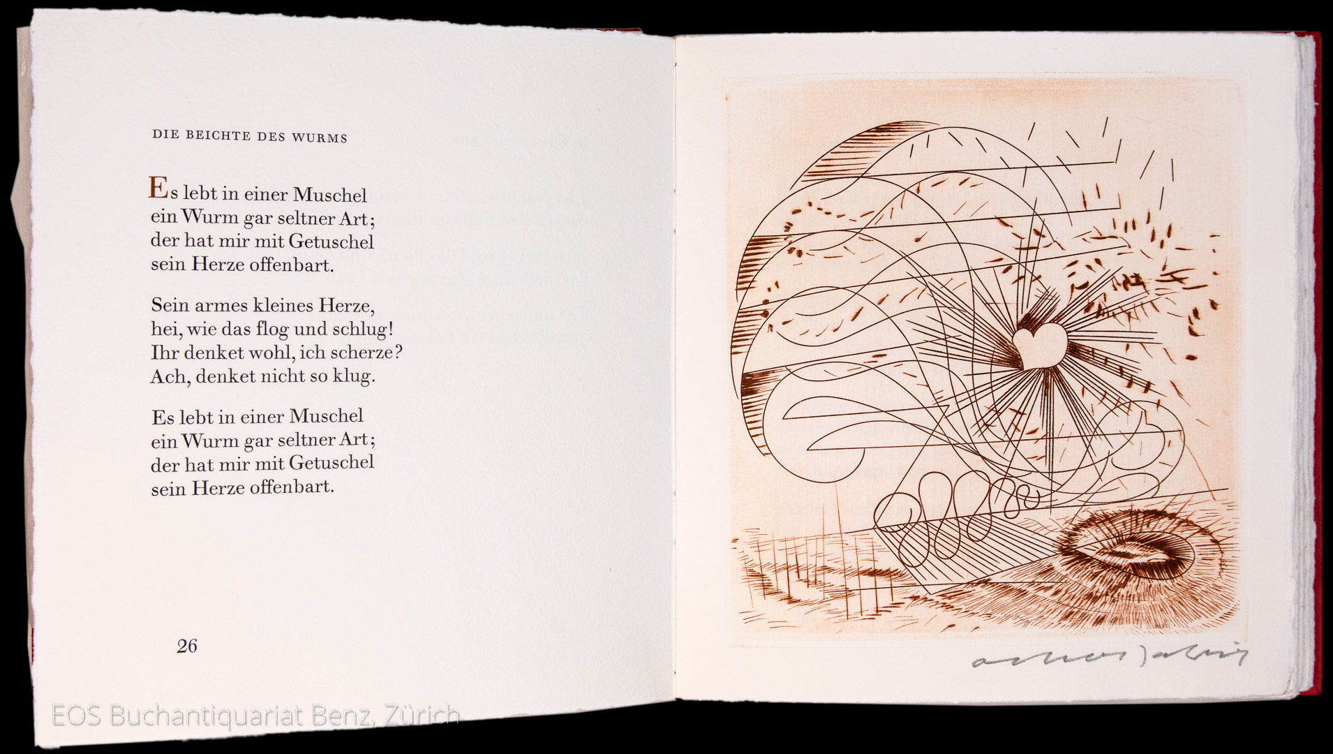 Nr. IV von XL Exemplaren (Belegexemplare für den Künstler) Gesamtauflage 140 Ex. Mit einer zusätzlichen nicht eingebundenen kolorierten Radierung. Das Impressum und alle Radierung, ausser die Ttielvignette sind vom Künstler signiert. (Sprache: Deutsch / German)