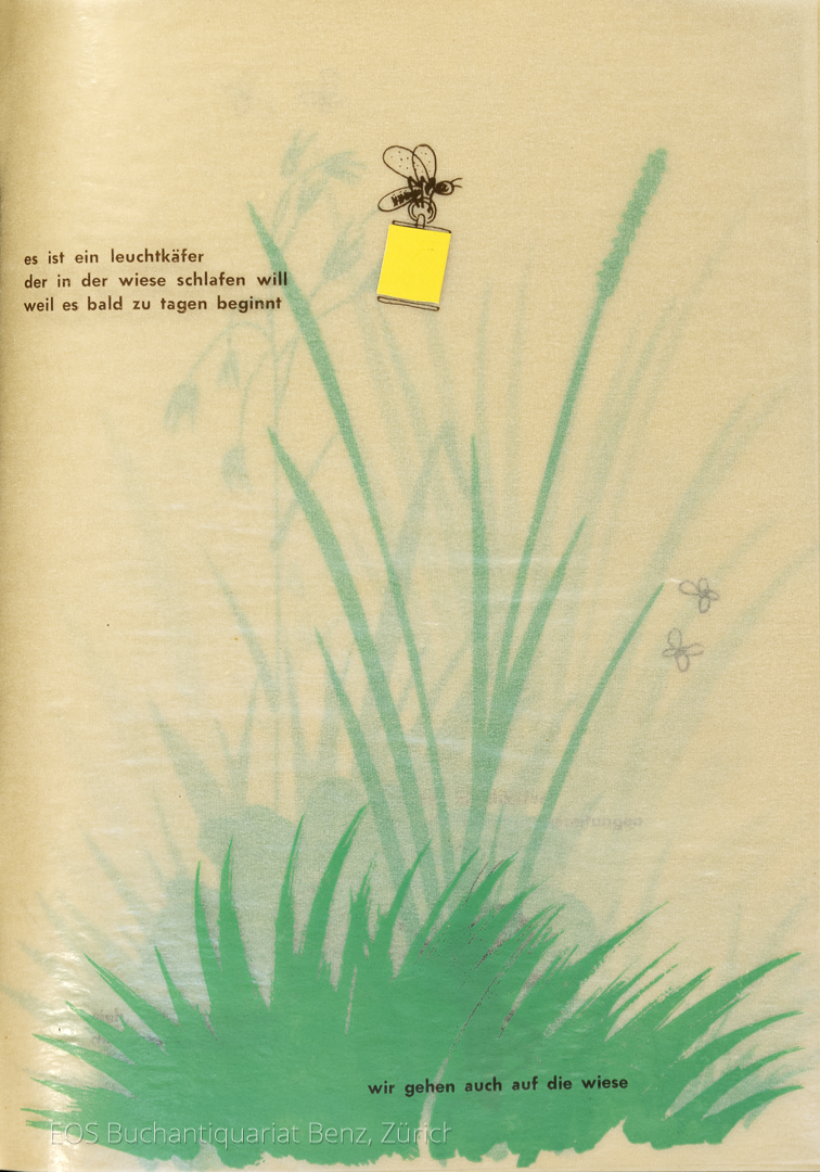 Munari, Bruno: Nella notte buia – In dunkler Nacht. Milano, Guisppe Muggiani, 1956. 3. Aufl. 8°. (26). Bl. Mit Illustrationen auf 3 verschiedenen Papieren (schwarz, grau, transparent) gedruckt, mit Löchern und Durchblicken auf dahinterliegende Bilder. Collagen. Illustr. Orig.-Pappband.