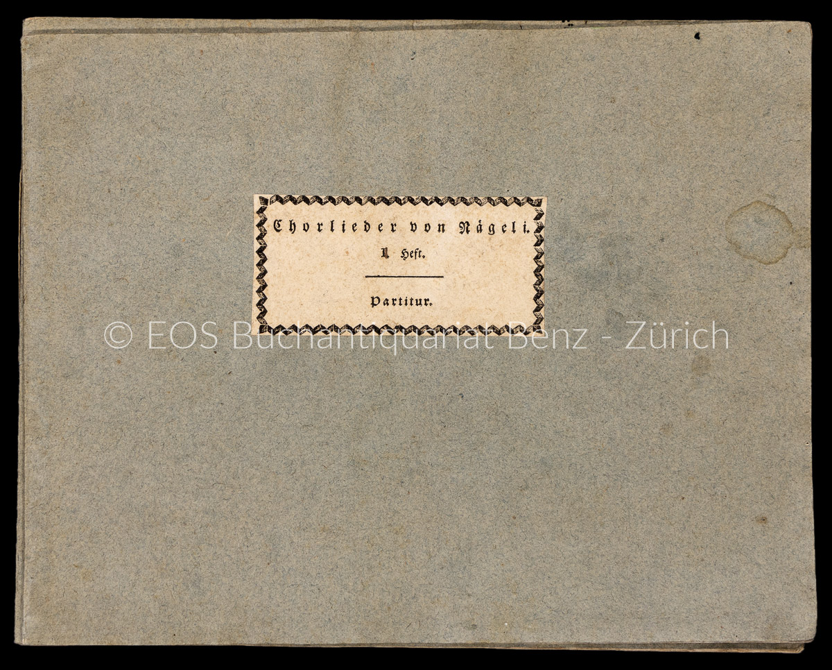 Nägeli, Hans Georg: Chorlieder für Kirche und Schule. Zweites Heft. Zürich, Hans Georg Nägeli, (um 1820). 5 Hefte. Quer-4°. S. 21–38; S. 9–16; S. 9–16; S. 9–16; S. 9–16. Orig.-Umschl.
