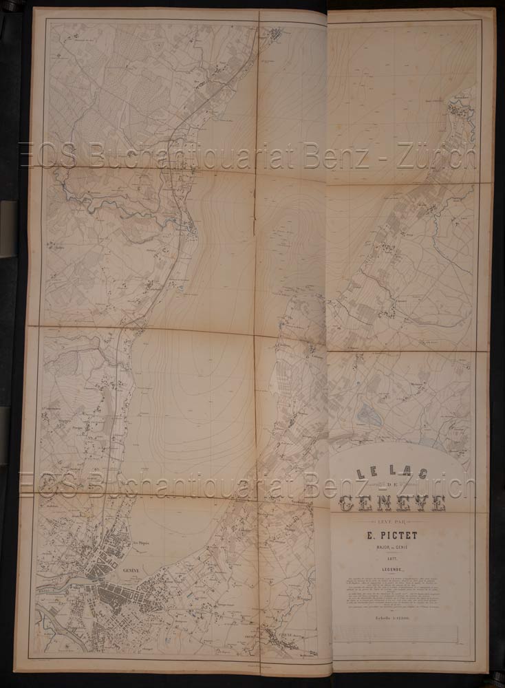 Pictet, E.: Le lac de Genève. Genf, H. Georg, 1877. 117 x 81 cm. Karte auf Leinen aufgezogen. Orig.-Leinenmappe.