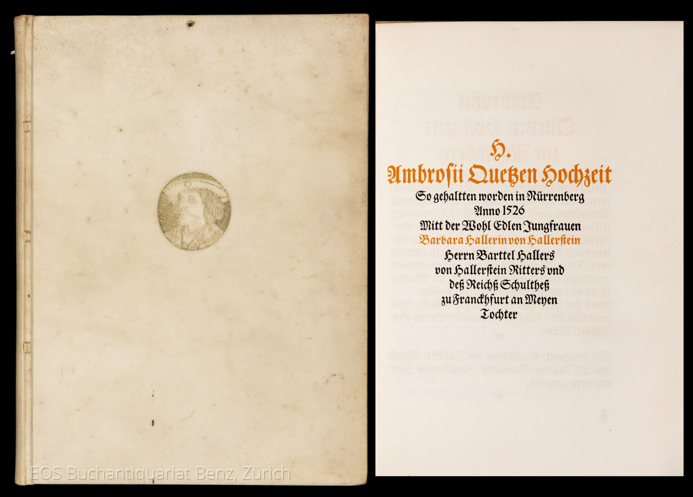 Quetz, Ambrosius: Das v. Quetzische Hochzeitsbüchlein für die Maximilian-Gesellschaft Offenbach, Maximilian-Gesellschaft, 1913. Kl.-4°. 47 S. Pergamentband der Zeit.