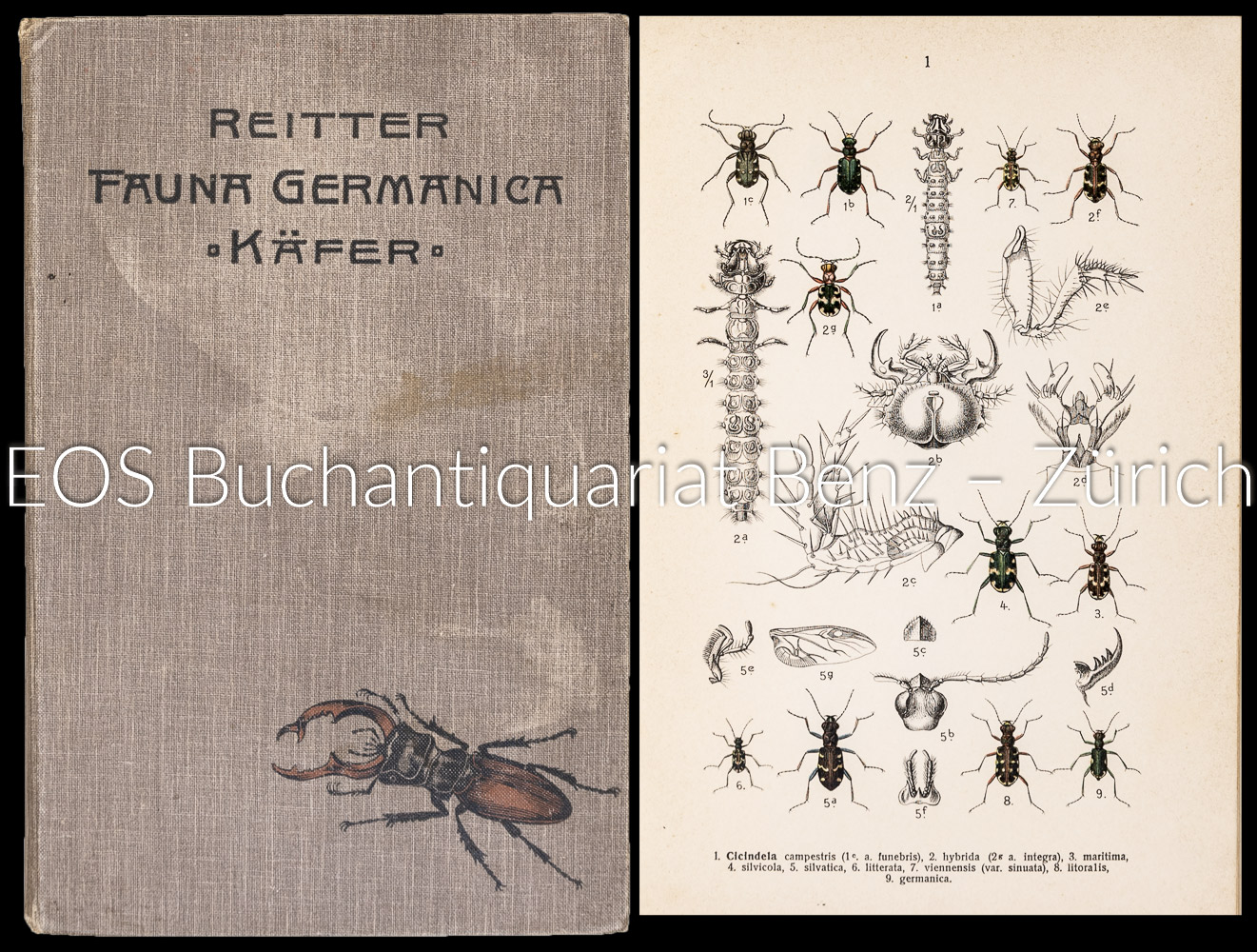 Reitter, Edmund; Fauna Germanica. Nach der analytischen Methode bearbeitet. Stuttgart, K. G. Lutz‘ Verlag, 1908-1935. 6 Bände. 8°. Mit zahlreichen Abbildungen auf 168 chromolith. Tafeln. Illustrierte Originalleinenbände.