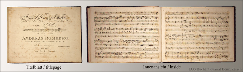 Romberg, Andreas Jakob: Das Lied von der Glocke von Schiller. Klavierauszug. Op. 25. 7tes Werk der Gesangstücke. Bonn, N. Simrock, o.J. (um 1810). Neue Auflage. Quer-4°. 43 S. gestochene Noten. Halblederband der Zeit (berieben und bestossen).