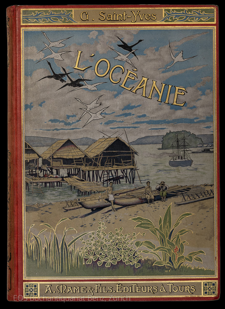 Saint-Yves, Georges: L’Océanie. Tours, A. Mame et fils, (1902). Gr. in-8°. 398 S. Mit 18 Tafeln (davon 2 Karten). Farb. illustr. Orig.-Leinenband.