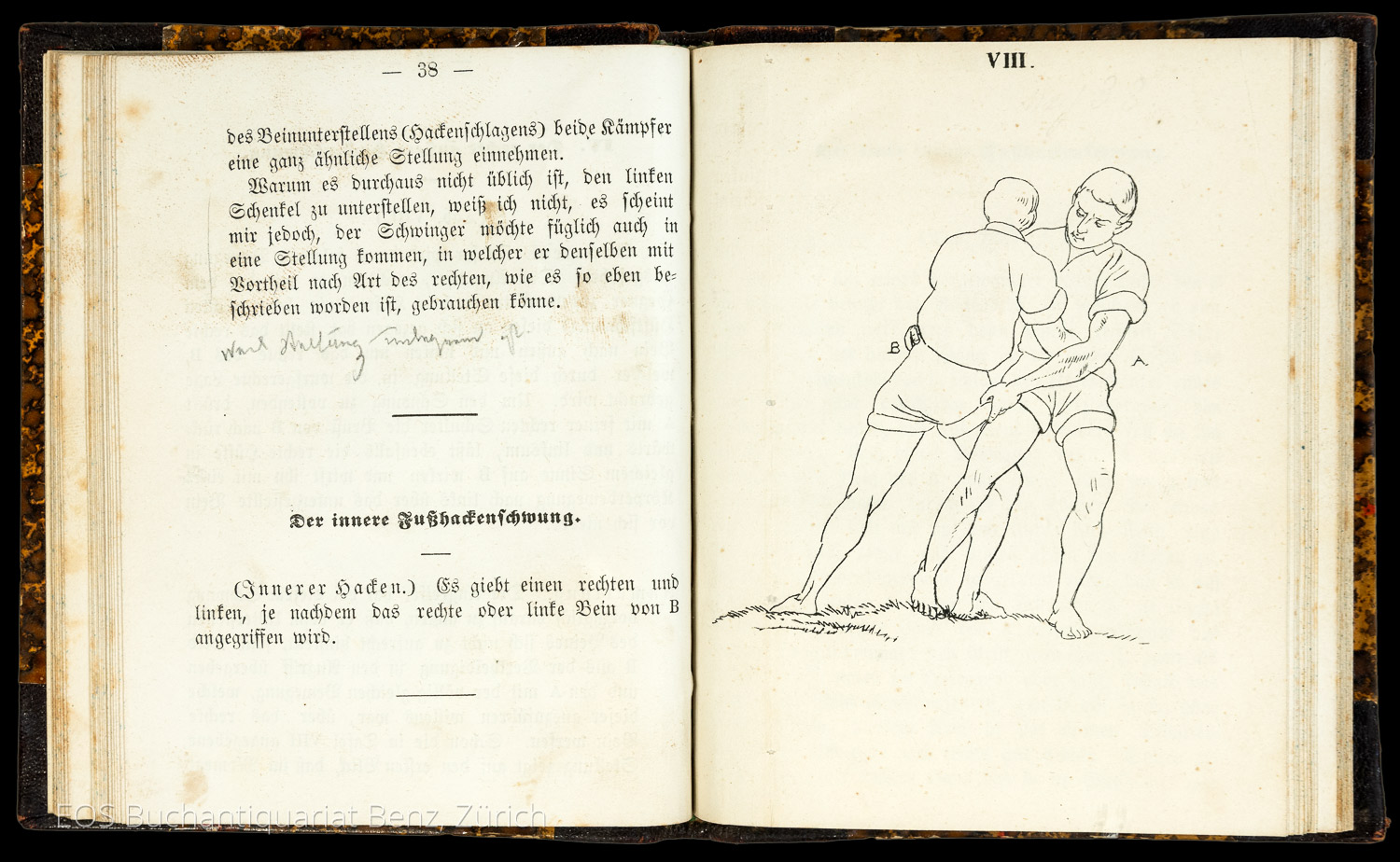 Schärer, Rudolf:  Anleitung zum Schwingen und Ringen. Bern, Rud. Jenni, 1864. 8°. (2) Bl., VII, (1), 76 S. Mit 24 Tafeln. Halblederband der Zeit.