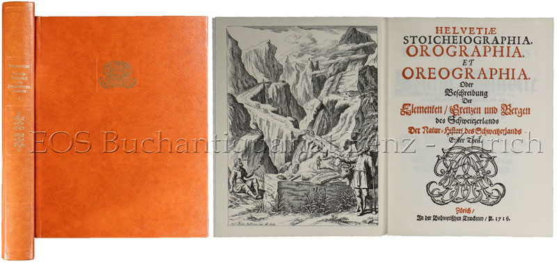 Scheuchzer, Johann Jakob:  Naturhistorie des Schweizerlandes. (Reprint der Ausgabe 1716-18). Zürich, Orell Füssli, 1979. 3 Bände. 8°. 272 S.; 487 S.; 336 S. Mit zahlr. z.T. gef. Tafeln. Orig.-Kunstlederbände.