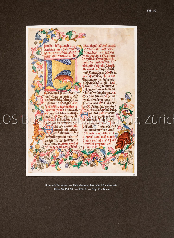Schmid, Josef: Les plus belles miniatures de la Bibliothèque cantonale de Lucerne. Lucerne, Société suisse des bibliophiles, 1941. 4°. 36 S. Mit 53 zum Teil farb. Tafeln. Orig.-Halblederband in Schuber.