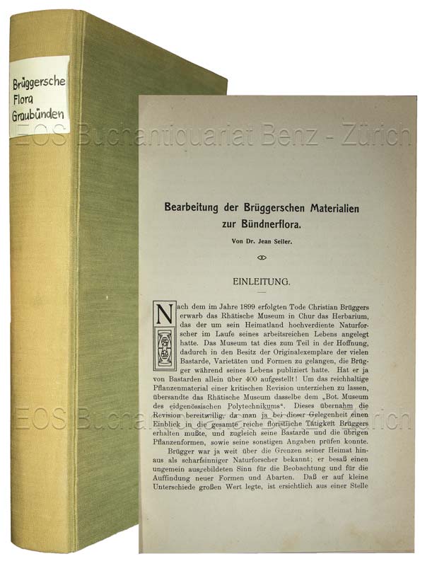Seiler, Jean: Bearbeitung der Brüggerschen Materialien zur Bündnerflora. Chur, Bischofberger & Hotzenköcherle, 1909. 580 S., Faltkarte, Falttab., 7 Taf. Orig.-Leinenband.