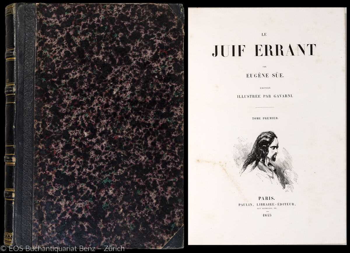Vicaire 687. – Erste illustrierte Ausgabe des erstmals 1844 erschienenen Werks des franz. Schriftstellers Eugène Sue (eig. Marie-Joseph Sue, 1804-1857), der vor allem durch „Les mystères de Paris“ berühmt wurde. – Mit Besitzerstempel auf fl. Vorsatz. Vorsätze leimschattig. Stellenweise stockfleckig. (Sprache: Französisch / Français / French)