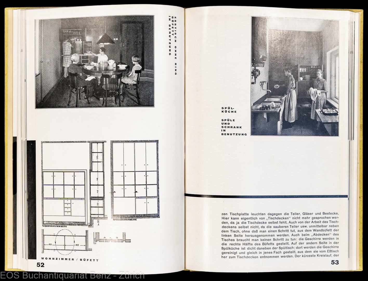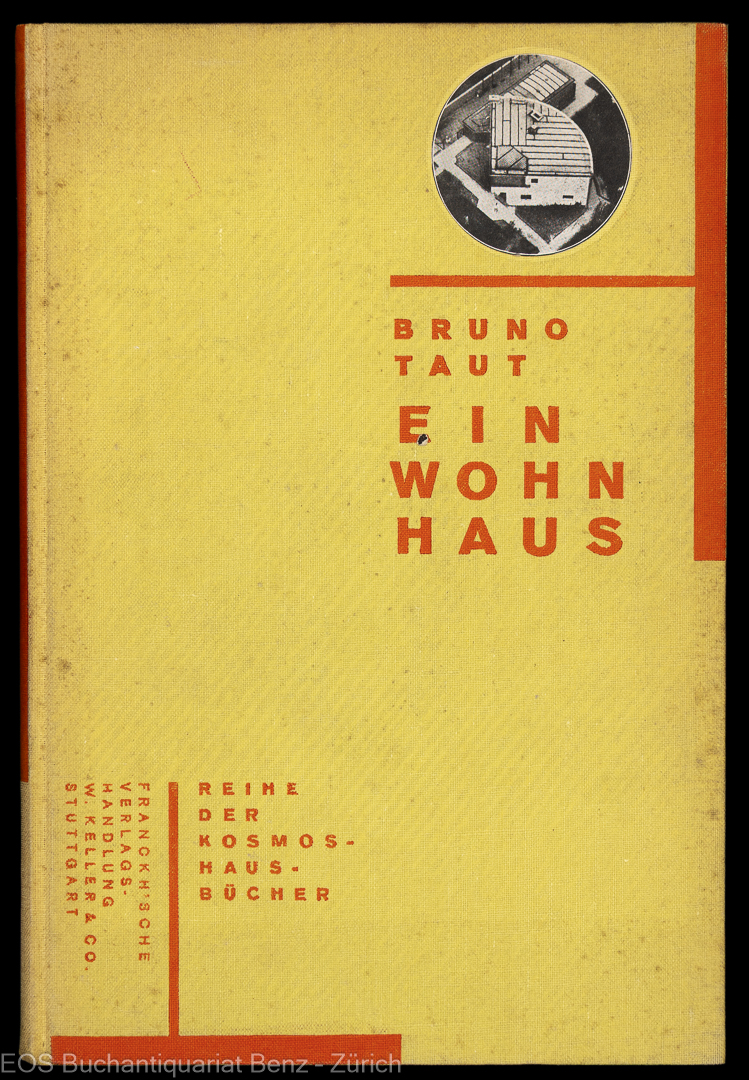 Taut, Bruno: Ein Wohnhaus. Stuttgart, Franckh’sche Verlagshandlung W. Keller & Co., 1927. Gr.-8°. 3 Bl., 118 S. Mit 105 Abb.nach Photographien (dv. 1 farbig), 72 Abb. nach Zeichnungen und 1 Farbenzusammenstellung. Illustr. Orig.-Leinenband