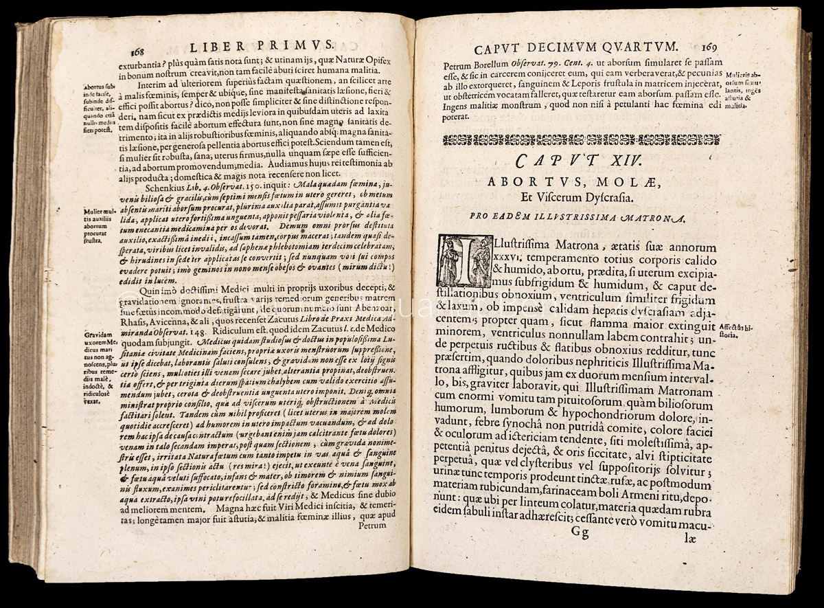 Thiermair, Franz Ignaz: Scholia medica ad totidem & antè nunquam vulgatas consultationes et responsiones. Quas partim author, partim alii, praecipue in Bavaria celeberrimi archiatri privatim & diversis temporibus exararunt. München, Johann Jäcklin, 1673. 2 Teile in 1 Band. Folio. (14) Bl., 196 S., (4) Bl., 200 S., (7) Bl. (Index), 1 Bl. Druckermarke. Mit gestochenem Frontisp. und einem gestochenen Textkupfer. Pergamentband aus der Zeit.