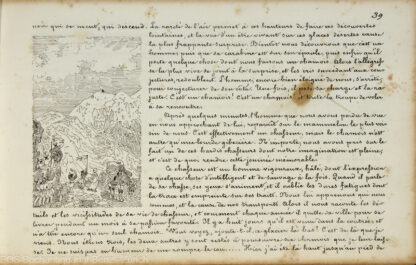 Blondel 362. – Sander 690. – Carteret III, 591. – Erste Ausgabe. – Erschien 1844 gedruckt in «Premiers voyages en Zigzag». Die Reise des Ehepaars Töpffer, die am 21. August 1837 begann und 23 Tage dauerte, führte sie zusammen mit 16 Schülern und ihrem Bediensteten David von Genf nach Mailand. Die Route führte sie zunächst durch das Rhonetal nach Brig, weiter über den Simplonpass und die Valle d’Ossola zum Lago Maggiore. Von dort setzten sie mit dem Schiff nach Locarno über und reisten anschließend über Lugano und Como nach Mailand. Auf dem Rückweg durchquerten sie die Po-Ebene, bevor sie über Aosta und den Col du Bohomme die Savoyer Alpen überquerten und schliesslich nach Genf zurückkehrten. – Einband berieben und bestossen. Durchgehend leicht stockfleckig. Leder auf dem Vorderdeckel mit kleiner Fehlstelle. (Sprache: Französisch / Français / French)