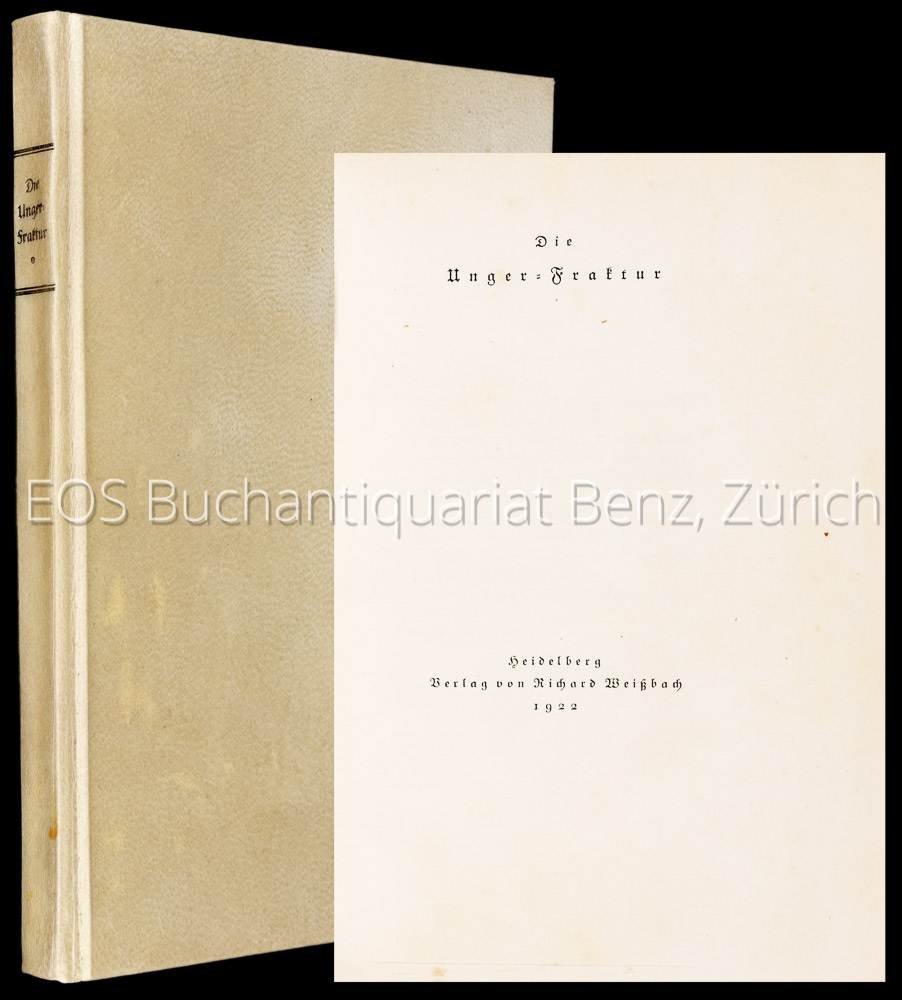 Unger, Johann Friedrich:  Die Unger-Fraktur. Heidelberg, 1922. 8°.. 8, XXII, 17, 3, 12, 69, 5 Seiten. Orig.-Pappband.