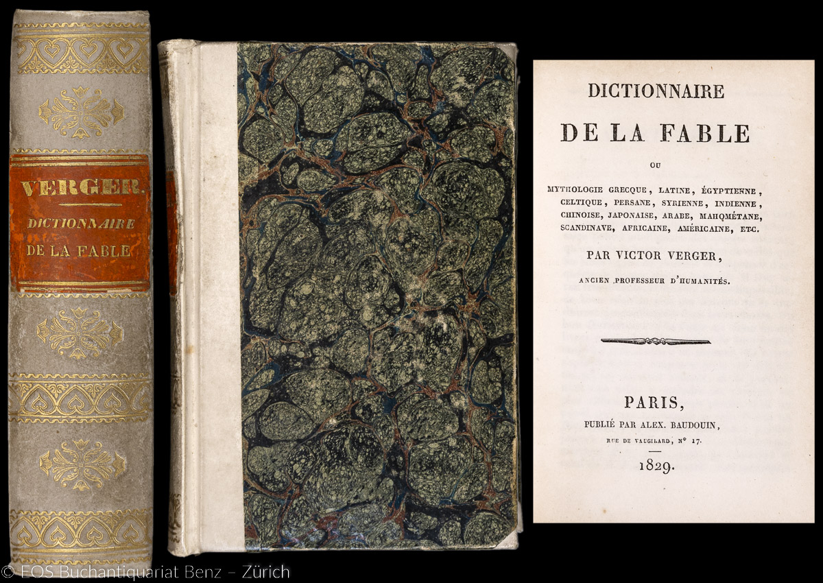 Verger, Vitcor: Dictionnaire de la fable Paris, Alex Baudouin, 1829. 8°. VIII, 510 S. Halbpergament der Zeit.