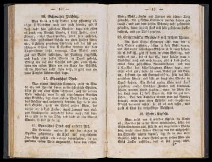 Vollständige und genaue Anleitung alle Gattungen Fleisch- und Fastensuppen, Assietten, Rindfleisch, Saucen, Zugemüse, Fleisch- und Fischspeisen jeder Art, Salats und Kompots auf die beste und wohlfeilste Art zu verfertigen. ein sehr nützliches Handbuch für jede Haushaltung. Brünn, Rohrer, 1834. 4. Aufl. (4), 124 S., (4) Bl. (Register). Späterer Leinenband mit erneuerten Vorsätzen.
